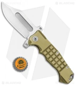 This model of the Andre de Villiers features a satin finished bowie blade made from D2 steel. The gold titanium handle has a gold anodizing with a frag pattern and a tumbled titanium backspacer.