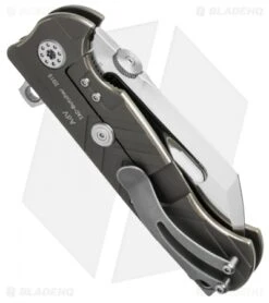 The Butcher is a bold folding knife design from Andre de Villiers. This mid-tech model has excellent feel in hand along with smooth and precise action from the ball-bearing pivot. The high satin finished S35VN steel blade has flat grinds, a fuller groove, and a swedge spine. Titanium handle construction with a jimped back spacer and pocket clip.