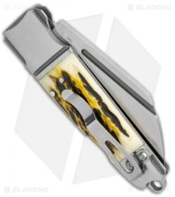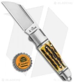 This lockback version of the Pocket Butcher has jigged bone scales with an engravable brass insert. Taking styling cues from the Butcher, Andre de Villiers has integrated his prominent wharncliffe blade design into a sturdy folding knife.