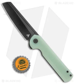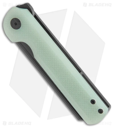 - Natural jade G-10 handle scale with a black titanium backspacer and frame.