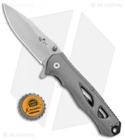 The Rancor II updates the popular EDC design with a skeletonized stainless steel handle and a flipper blade made from CPM-S30V steel. This Rancor II model has a gray handle and a bead blasted blade.