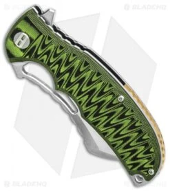 The Bestech Hornet offers EDC style and a unique design. This Hornet model is outfitted with a green and black G-10 handle and a satin finished modified sheepsfoot blade. Stainless steel liners provide a solid frame work for the knife with an open flow-through design for reduced weight. Jimping on the belly, spine, and thumb ramp provide maximized blade control. A stainless steel pocket clip and backspacer finish off the impressive Hornet design.