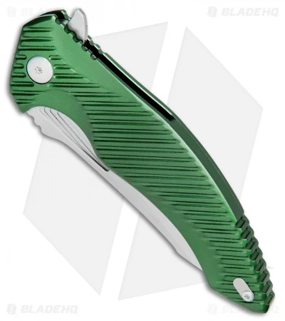 This T4 model comes equipped with a green aluminum handle and a stonewashed blade.