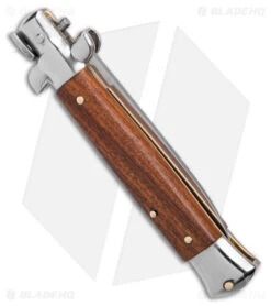 This 7.5″ Italian Stiletto from Frank B. features classic stiletto style with a Cocobolo wood handle and a polished spear point blade. Frank B. creates some of the finest authentic Italian stilettos available on the market today. Brass pins and liners add a classic touch to the design. Add the premier Italian knife-maker to your collection today with an authentic Italian stiletto from Frank B.