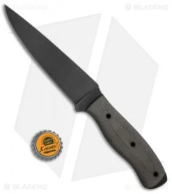 This Recon fixed blade features a black Micarta handle and a 5160 carbon steel blade with a no-glare Caswell finish.